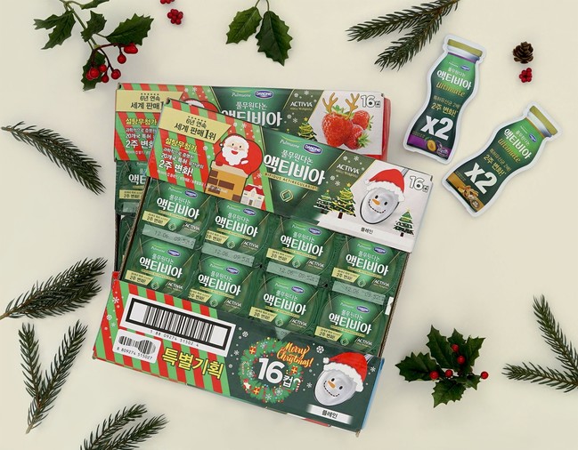 또한, 풀무원다논은 12월 한 달간 액티비아를 상징하는 녹색을 활용해 대형마트의 시음대와 진열대를 크리스마스 분위기로 꾸민다. 일부 매장에서는 액티비아를 활용한 크리스마스 트리도 설치해, 겨울철 장 건강을 위해 액티비아를 찾는 고객들을 맞이할 계획이다.