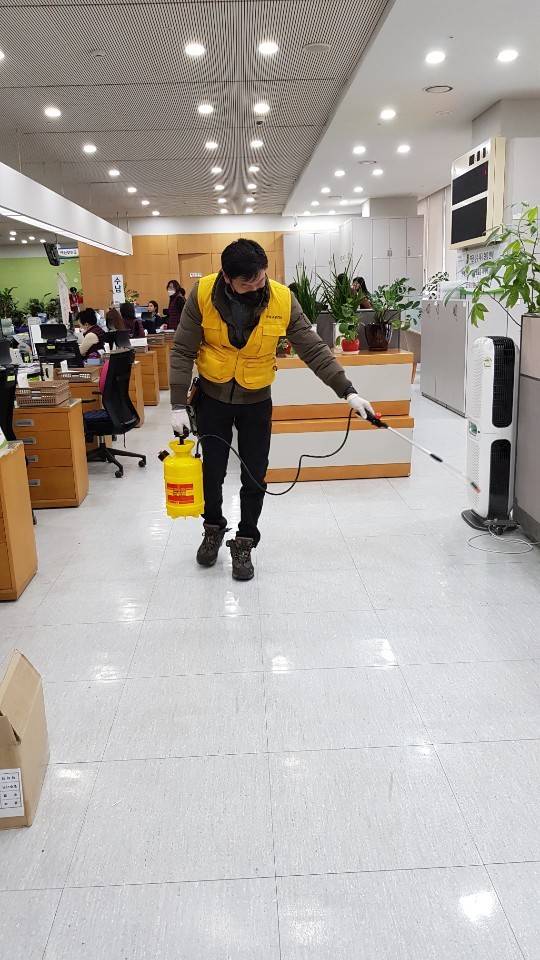 분무기를 이용한 살포방식으로 인체에 무해한 살균제를 사용한다. 시는 청사 출입구에 손소독기 4개, 엘리베이터에 손소독제 13개를 비치했고, 이용 시민들에게 예방수칙을 안내하고 있다.