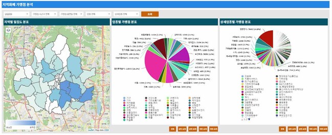 지난 1월 오픈된 상권분석 시스템은 인구, 사업자, GIS 등 공공데이터와 2019년 1월부터 지난해 하반기까지의 지역화폐 가맹 및 결제 정보, 유동 인구, 카드 이용, SNS 등 민간데이터를 이용해 분석된 정보다.