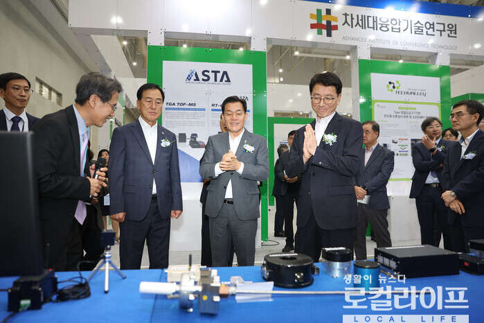 | ▲ '2024 차세대 반도체 패키징 산업전'에서 김성중 경기도 행정1부지사와 이재준 수원특례시장 등 주요 참석자들이 전시장을 둘러보고 있다. (사진제공=경기도) |