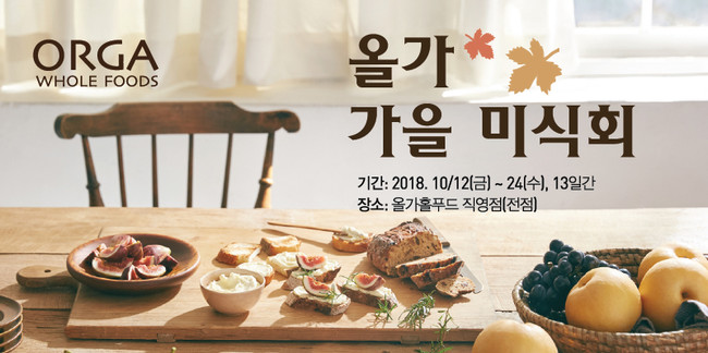 풀무원 계열의 LOHAS Fresh Market, 올가홀푸드(대표 강병규, 이하 올가)가 수확의 계절 가을을 맞아 더욱 신선하고 맛있는 제철 먹거리를 최대 50%까지 할인하는 ‘2018 가을 미식회’ 프로모션을 진행한다고 17일 밝혔다.