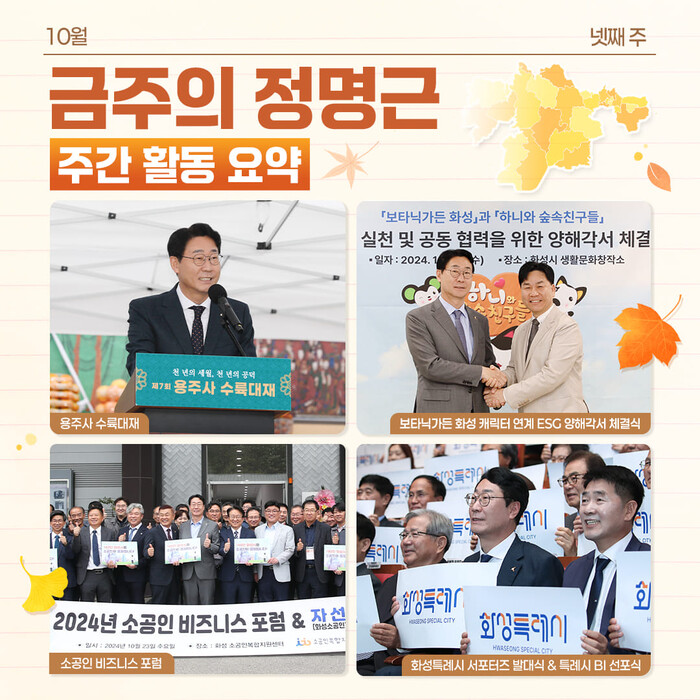 [화성=로컬라이프] 송준형 기자 = 정명근 화성시장은 26일, 자신의 페이스북을 통해 갑자기 찾아온 추위에 가을이 성큼 다가왔음을 실감한 한 주였다며, 이번 주 금주의 정명근으로 찾아왔다고 말했다.