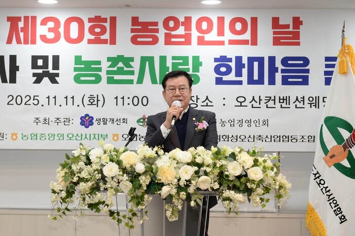 이 의장은 먼저 오늘 농업인의 날을 맞아 오산의 들녘을 지켜온 모든 농업인 여러분께 깊은 감사의 마음을 전하며, 한 알의 씨앗을 심고 거두기까지 흘린 땀과 인내가 오늘 우리의 밥상을 풍요롭게 하고 삶의 뿌리가 되어주었다고 말했다.