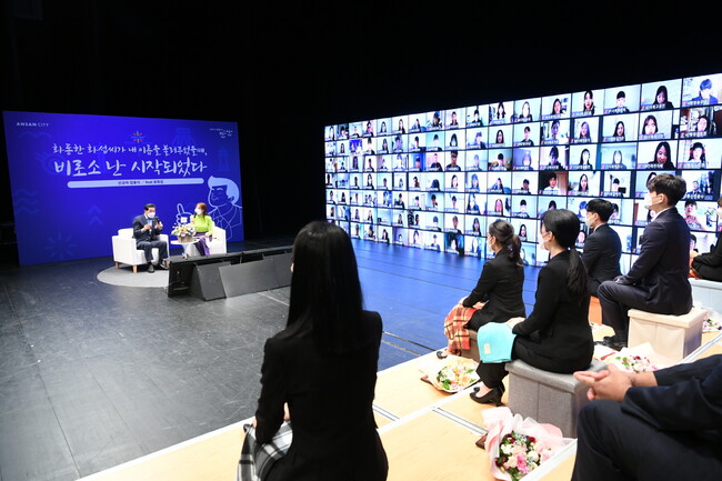 [로컬라이프] 안산시(시장 윤화섭)는 코로나19 확산 예방을 위해 올해 신규 공무원 임용식 역시 대면·비대면 병행으로 개최했다고 밝혔다.