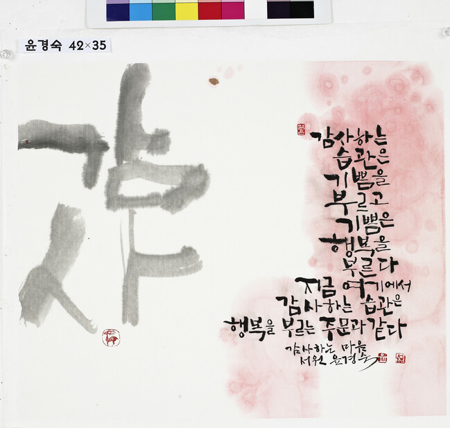 사진/윤경숙 작가의 캘리그래피 작품 ‘감사하는 마음’(사진제공=수원시)