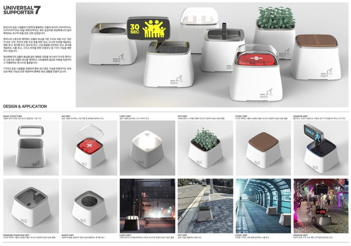 대상작 ‘UNIVERSAL SUPPORTER 7(홍욱)’은 기본 구조를 다목적으로 활용할 수 있는 공공시설물 디자인을 제안해 높은 평가를 받았다.