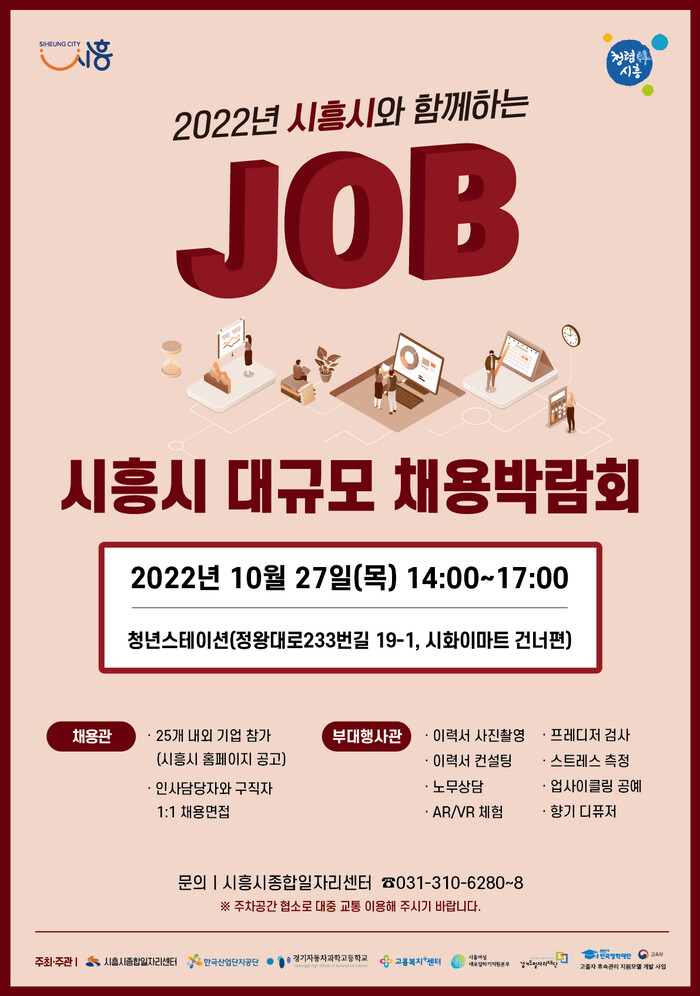 시흥시(시장 임병택)가 오는 27일 오후 2시부터 오후 5시까지 시흥청년스테이션(정왕동 시화이마트 건너편 미관광장 뒤)에서 『2022 시흥시 대규모 채용박람회』를 개최해 침체된 채용시장에 활기를 불어넣는다.