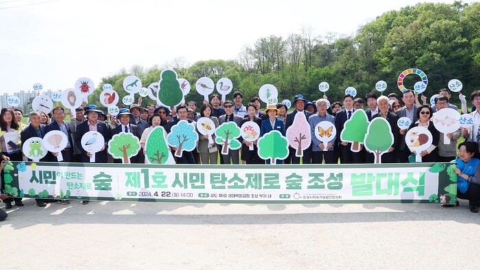 [안성=로컬라이프] 송준형 기자 = 안성시 제1호 시민 탄소제로 숲 조성을 위한 발대식이 공도읍 대림동산에서 열렸다.