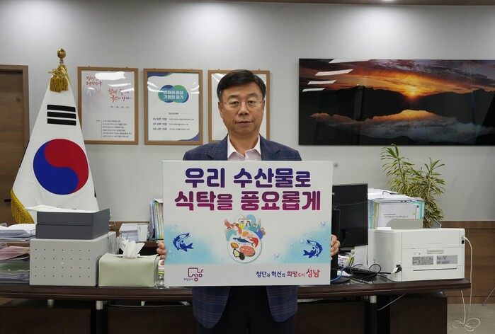 [로컬라이프] 송준형 기자 = 신상진 성남시장은 24일, 박경귀 아산시장님의 지명을 받아 ‘수산물 소비·어촌 휴가 장려 챌린지’에 동참했다.