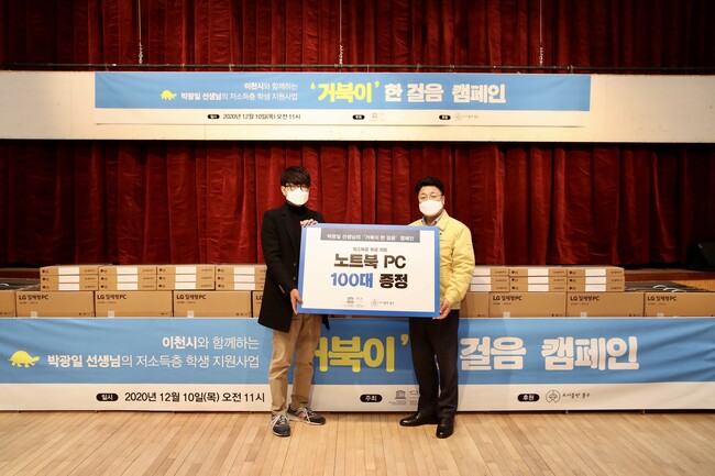 사진/국어 1타강사 박광일 저소득층 학생에게 컴퓨터 지원(이천시청 제공)