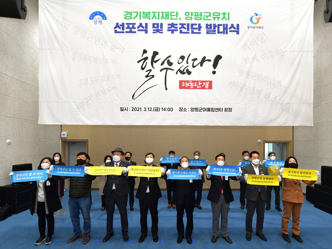 양평군(군수 정동균)에서는 지난 12일 양평군어울림센터(양평읍 오빈리 소재)에서 양평군 경기복지재단 유치 선포 및 발대식을 개최했다.