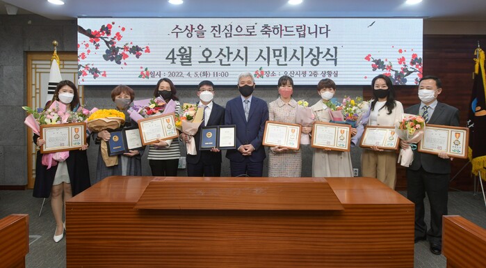 오산시(시장 곽상욱)는 5일 화요일, 오산시청 상황실에서 2022년 4월 오산시 시민시상식을 개최했다.