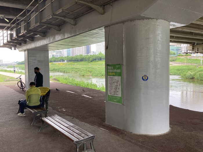 사진/광명시(시장 박승원)는 여름철 자연재난으로부터 시민의 안전을 지키고자 ‘여름철 자연재난 대응 종합대책’을 마련해 오는 10월 중순까지 운영한다-안양천 철산대교 하부 야외 무더위쉼터(사진제공=광명시)