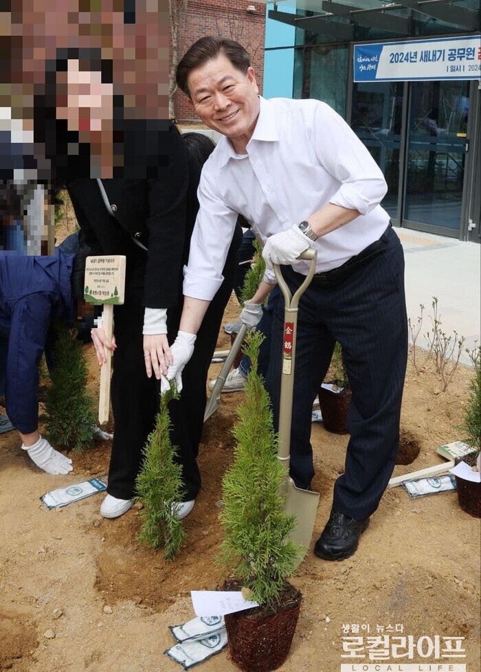 [광명=로컬라이프] 송준형 기자 = 박승원 광명시장은 5일, 식목일을 맞아 신입 공무원들과 함께 나무심기 행사를 가졌다.
