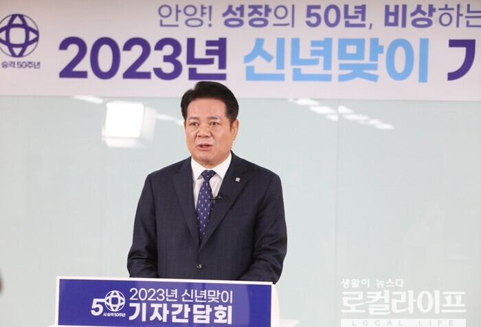 | ▲ 최대호 안양시장이 '2023년 신년맞이 기자간담회'를 진행하고 있다. (사진제공=안양시) |