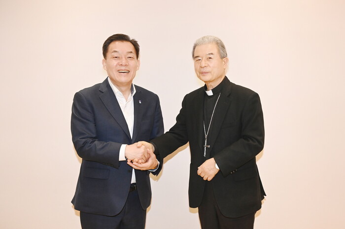 사진/이재준 수원시장과 수원교구장 이용훈 주교가 함께하고 있다.(사진제공=수원시)