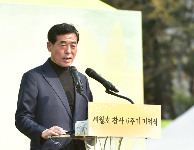 [안산=로컬라이프] 송준형 기자 = 윤화섭 안산시장이 16일 안산 화랑유원지 제3주차장에서 열린 세월호참사 6주기 기억식에 참석해 추도사를 통해 희생자를 기리고 유가족 등을 위로했다.