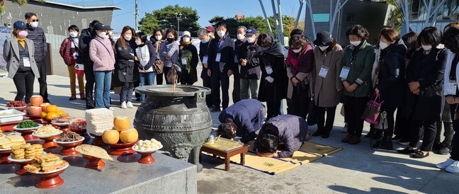 [로컬라이프] 헌법기관이자 대통령 직속의 통일자문기구인 제19기 민주평화통일자문회의 수원시협의회(회장 조철상)가 11월 3일 관내 거주하는 북한이탈주민과 자문위원 등 75명이 참여하여 <2020년 북한이탈주민 합동망향제>를 파주 임진각 망배단에서 개최했다.