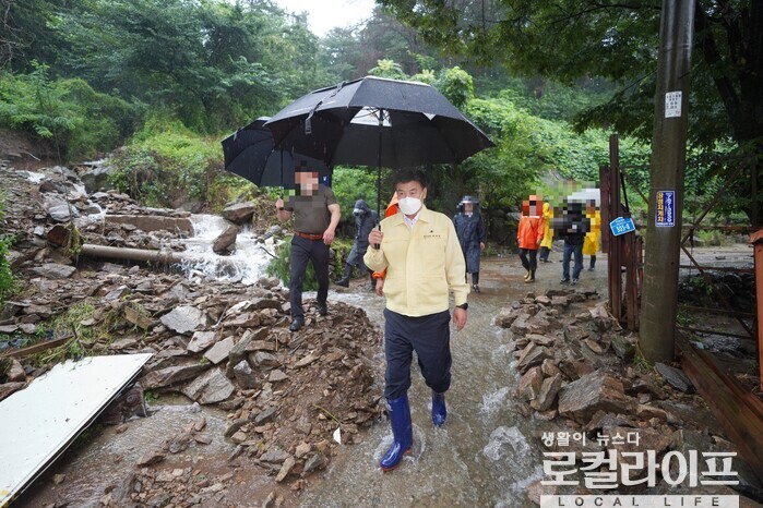 [경기 광주=로컬라이프] 송준형 기자 = 방세환 경기도 광주시장이 수해 현장을 방문해 피해 현장을 점검했다.