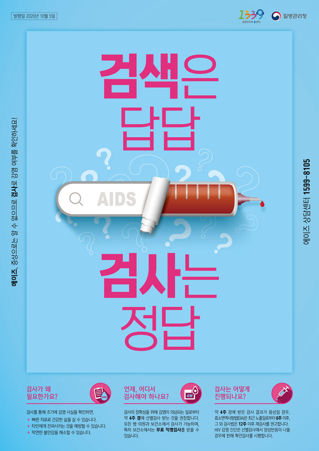 한편 에이즈는 전국보건소에서 무료익명검사가 가능하며, 자세한 사항은 용인시콜센터(1577-1122) 또는 에이즈 상담센터(1599-8105)에 문의하면 된다.