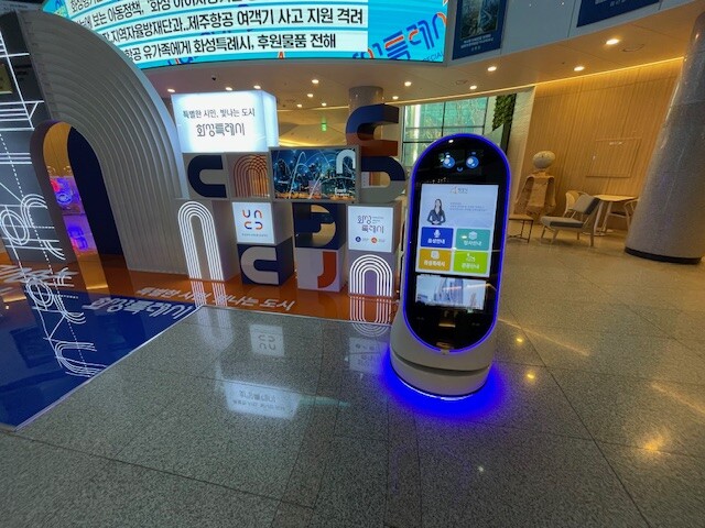 화성특례시(특례시장 정명근)가 인공지능(AI) 안내 로봇을 도입해 청사에 방문하는 시민을 맞이하고 있다.