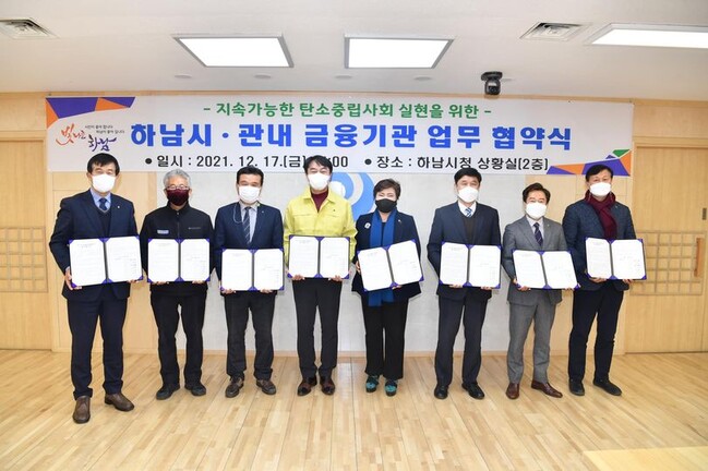 그러면서 ‘지속가능한 탄소중립 사회’ 실현을 위해 하남시 풀뿌리 금융기관(7개)이 모였다면서, 기후위기 비상행동을 실천하는 시민들에게 금융우대서비스 제공, 탄소포인트제와 연계한 금융우대서비스 제공, 관내 29개 지점을 거점으로 하는 녹색 캠페인 등 다양한 의견을 나누었다고 전했다.