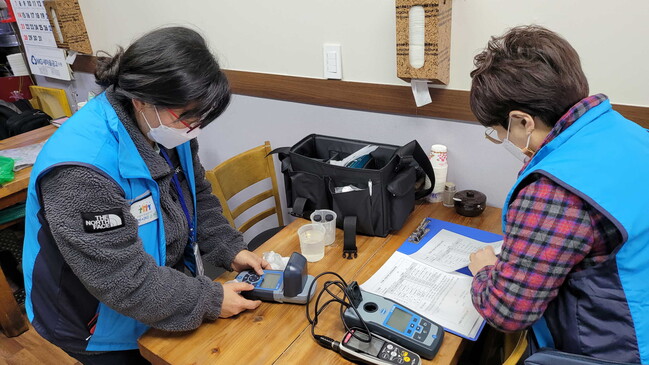 사진/수원시 상수도사업소 워터 코디가 한 업소에서 수질 검사를 하고 있다. (사진제공=수원시)