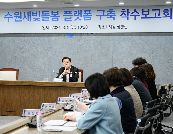 수원시는 8일 시청 상황실에서 이재준 수원시장 주재로 ‘수원새빛돌봄 플랫폼 구축 착수보고회’를 열고, 플랫폼 구축 방안을 논의했다.