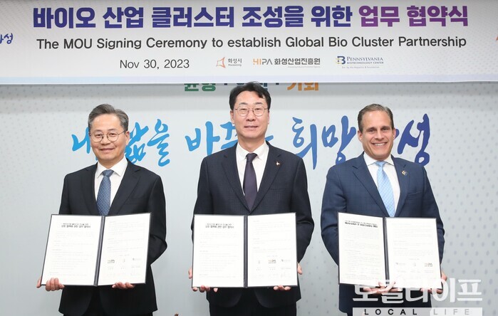 [화성=로컬라이프] 송준형 기자 = 화성시는 30일, 미국 펜실베니아 바이오센터와 ‘바이오산업 클러스터 조성을 위한 업무협약’을 체결했다.