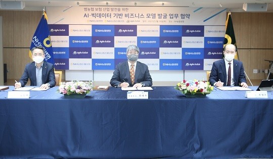 NH농협생명과 NH농협손해보험은 16일 NH농협생명 본사에서 애자일소다와 인공지능·빅데이터 기반 비즈니스 모델 공동연구개발을 위한 업무협약을 체결했다고 밝혔다.