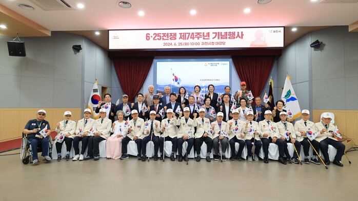 25일 과천시에 따르면, 6.25 참전용사를 기리는 ‘6·25전쟁 제74주년 기념행사’가 과천시청 대강당에서 열렸다.
