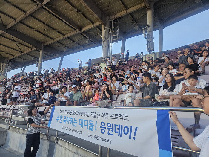 수원시(시장 이재준)는 ‘수육대(수원 육아하는 대디들)’ 가족을 대상으로 20일 프로야구 경기 관람을 지원했다.
