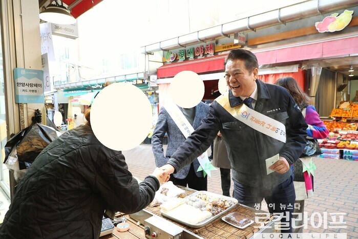 [안양=로컬라이프] 송준형 기자 = 최대호 안양시장이 설 명절을 앞두고 전통시장을 찾아 상인들을 격려했다.