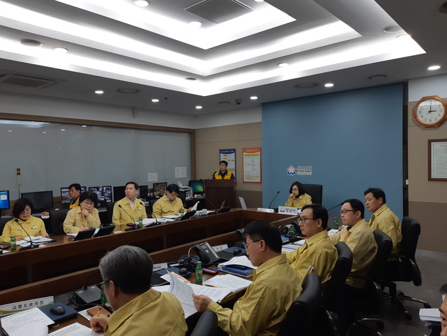 <사진/ 코로나19 대응 상황 긴급보고회를 실시하고있다>