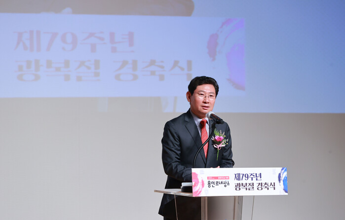 이상일 용인특례시장은 15일 용인시청 에이스홀에서 열린 ‘제79주년 광복절 경축식’에서 ”오늘은 우리 민족이 암흑에서 빛을 되찾은 지 79년이 되는 날로 광복의 그 순간이 얼마나 감격스러웠을지 생각해 본다“며 ”순국선열과 애국지사들께 진심으로 존경과 경의를 표한다“고 말했다.