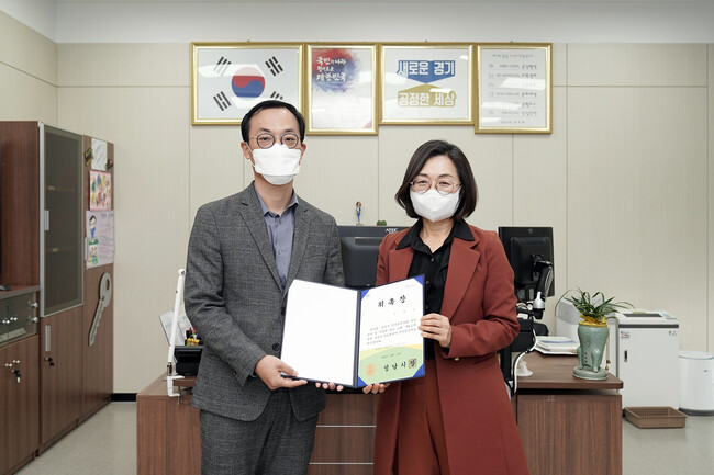 은수미 성남시장은 10월 21일 오후 2시 시청 시장 집무실에서 조성보 가천대학교 전자공학과 교수에게 ‘반도체 분야 민간전문가 위촉장’을 줬다.