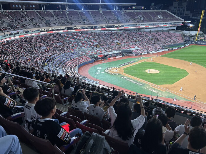 사진/수운시 드림스타트 아동 및 가족이 kt위즈 야구 경기를 관람하고 있다.(사진제공=수원시)