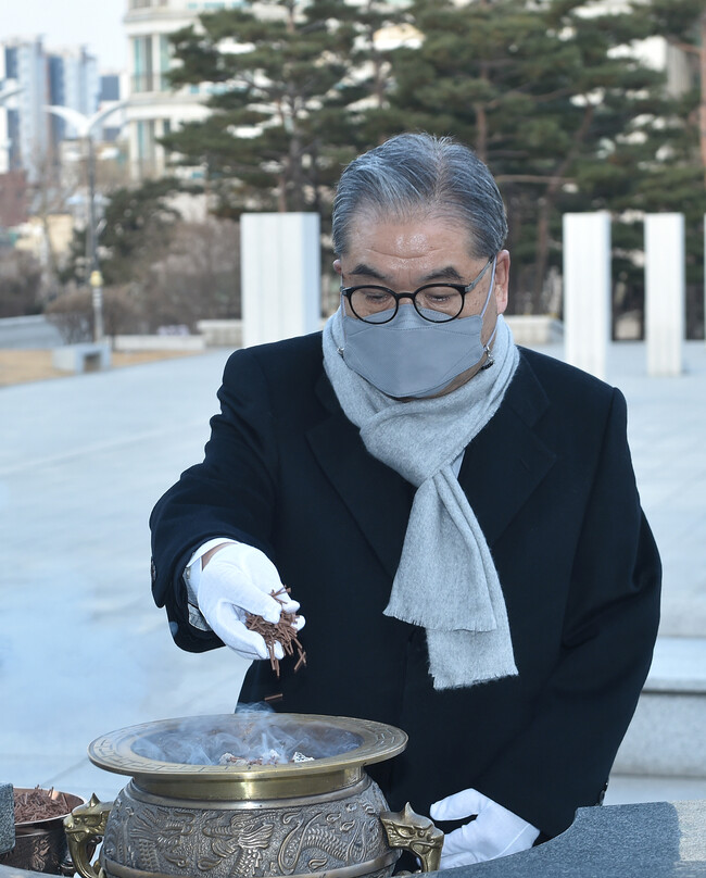 [로컬라이프] 이재정 경기도교육감이 4일 수원시 현충탑 참배로 2021년 새해 공식 일정을 시작했다.