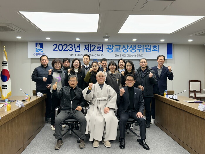 수원시 광교상생위원회는 20일 시청 상황실에서 2023년 제2회 회의를 열고, 제3기 위원을 위촉했다. 또 수산 스님(수원환경운동연합 공동대표)을 위촉직 공동위원장으로 선출했다.