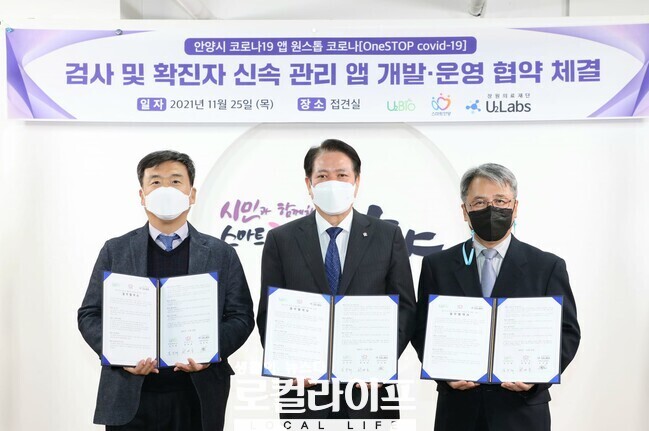 이를 위해 안양시는 관내기업인 ㈜유투바이오, 장원의료재단과 ‘원스톱 코로나 앱 개발·운영 협약’을 맺고 협력을 다짐했다.