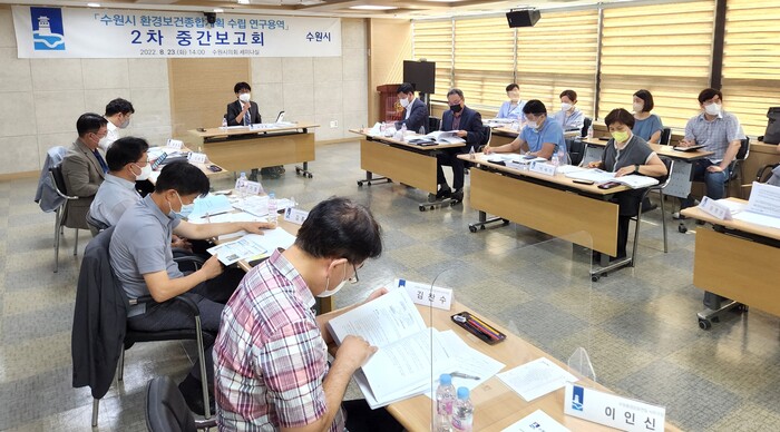 수원시가 23일 수원시의회 세미나실에서 ‘수원시 환경보건종합계획 수립 연구용역’ 2차 중간보고회를 열고, 용역 진행 상황을 점검했다.