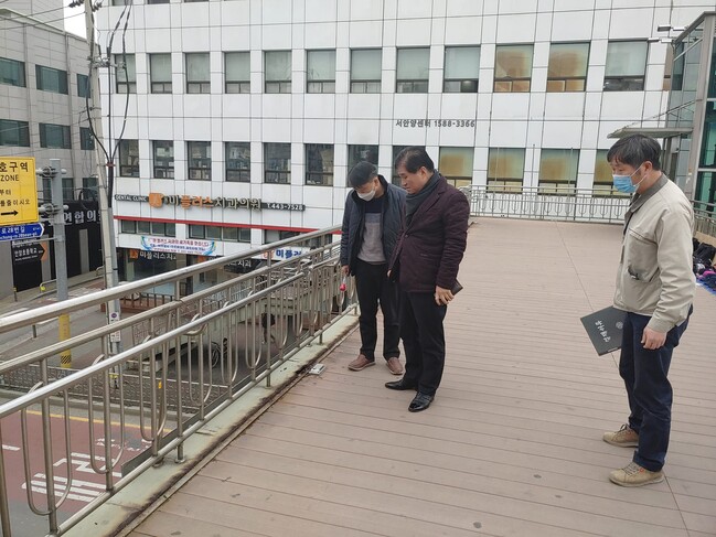 그러면서 우체국사거리 육교는 오랜 기간 많은 시민의 이용으로 육교가 노후해 시민이 불편을 겪음에 따라, 육교 바닥과 계단을 보수해 시민에게 더 쾌적하고 안전한 환경을 제공할 계획이며, 시민 여러분께서도 일상생활에서 발견하는 불편사항을 알려주시면 관련부서와 논의를 통해 민원사항이 해결될 수 있도록 노력하겠다고 전했다.