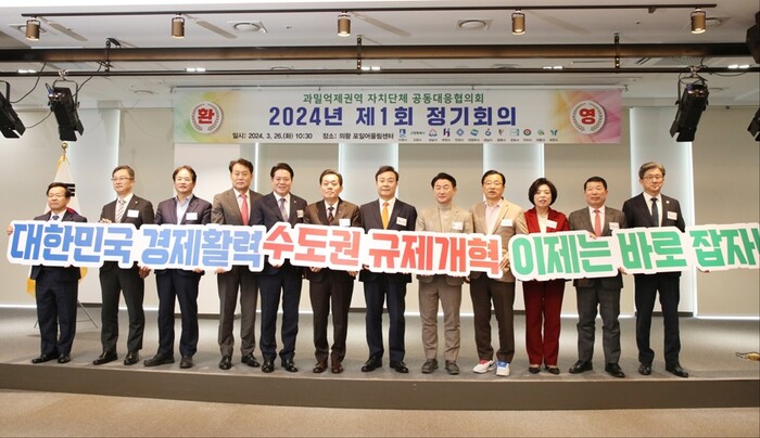 최대호 안양시장이 26일 의왕시 포일어울림센터 대강당에서 열린 과밀억제권역 자치단체 공동대응협의회(이하 협의회) 첫 정기회의에 참석했다고 27일 밝혔다.