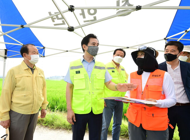 사진/벼 병해충 드론방제 현장방문(사진제공=화성시)