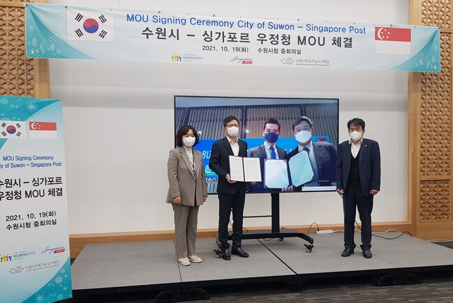 수원시와 싱가포르 우정청은 19일 비대면 방식으로 ‘통상협력 협약’을 체결하고, 협력을 약속했다.