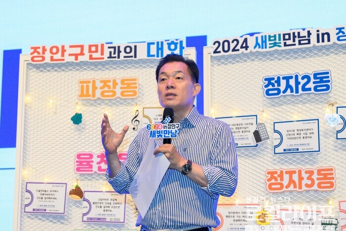 이재준 시장은 "찾아가는 시정 공유의 장 '새빛만남'이 장안구로 갔다. 오전엔 파장·율천·정자동, 오후엔 영화·송죽·조원·연무동 주민들과 함께했다"며 "SK아트리움 소공연장을 빼곡히 채워주신 주민들과 공간·경제·생활을 3대 축으로 한 '수원 대전환'의 꿈을 나눴습니다. 20여 개에 이르는 장안구 핵심 현안 진행 상황도 보고드렸다"고 전했다.