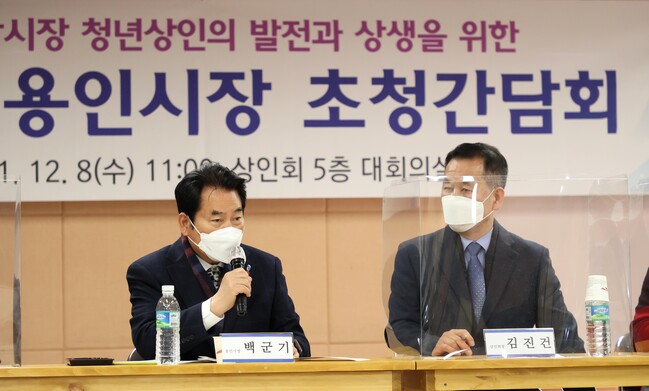 백군기 용인시장은 8일 처인구 김량장동 중앙시장 상인회사무실 5층 대회의실에서 중앙시장에 입점해 있는 청년상인들과 간담회를 가졌다.
