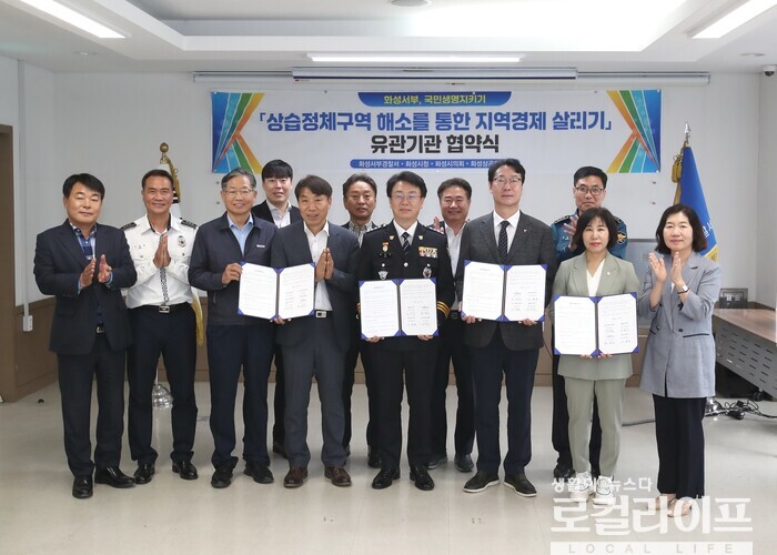 [화성=로컬라이프] 송준형 기자 = 화성시는 화성시의회, 화성서부경찰서, 화성상공회의소와 ‘상습정체구역 해소를 통한 지역경제 살리기 유관기관 협약’을 21일 체결했다.