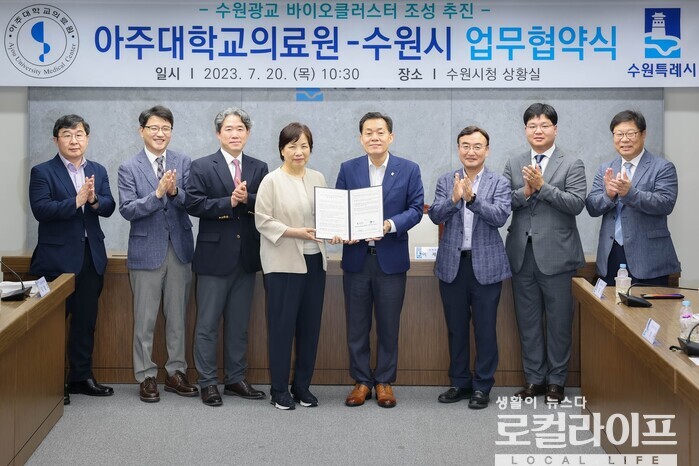 [수원=로컬라이프] 송준형 기자 = 수원특례시가 아주대학교 의료원과 ‘광교 바이오클러스터’ 조성 추진을 위한 업무협약을 체결했다.