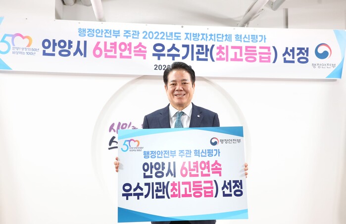 [로컬라이프] 송준형 기자 = 안양시는 2017년부터 6년간 연속으로 행안부 지방자치단체 혁신평가 우수기관으로 선정되어 명실상부 혁신 도시 안양의 기록을 이어가고 있다고 밝혔다.